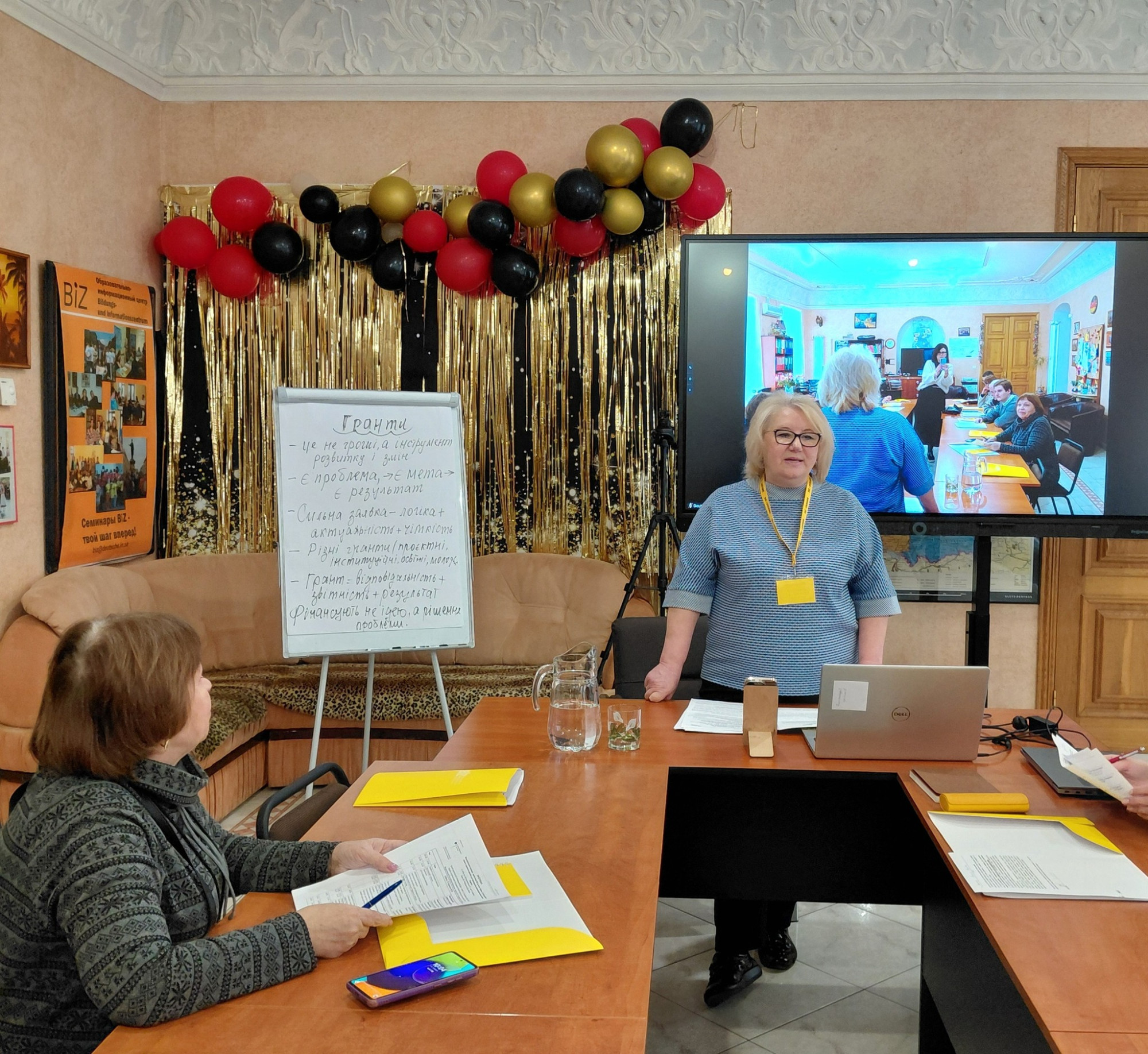 • Робота над помилками: директор БФ «Товариство Розвитку» Юрій Рябоконь, а також Наталя Вальтер (Харківське обласне товариство німців «Відергебурт») розбирали реальні приклади заявок, аналізували типові помилки та вчили «підсвічувати» сильні сторони проєктів.